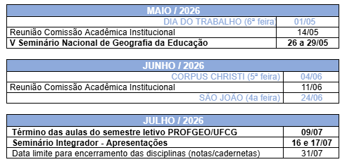 AGENDA DE ATIVIDADES PROFGEO/UFCG -